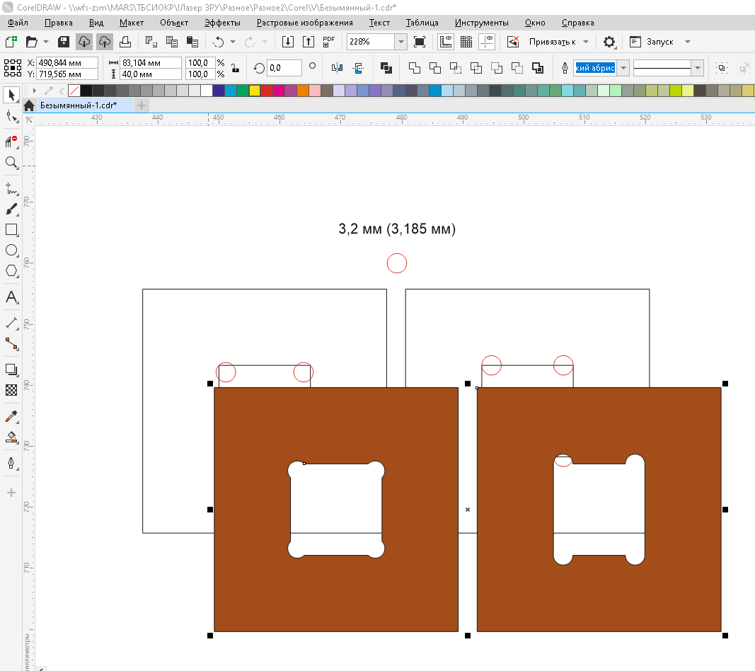 Во избежание ошибок и брака при резке, необходимо замкнуть все кривые, чтобы элементы были цельными фигурами.